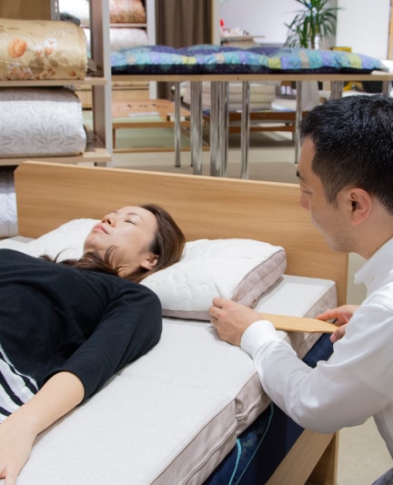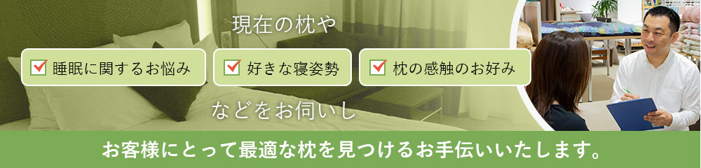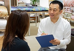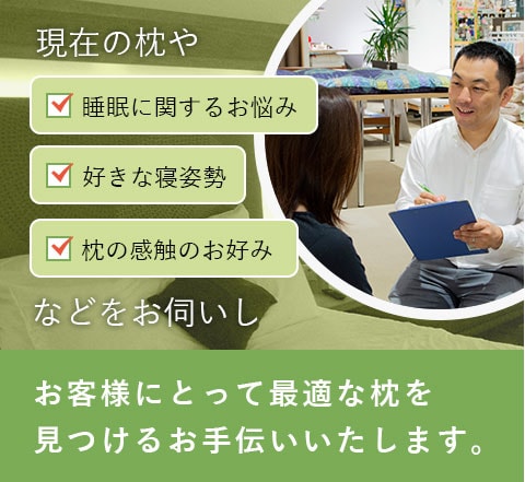 まくらのプロ「ピローアドバイザー」が、お客さまの身体の状態やお好みをきめ細かくカウンセリングします。