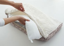 昔ながらのそば殻に近い感触のパイプ素材。洗えるのでそば殻よりも衛生的。